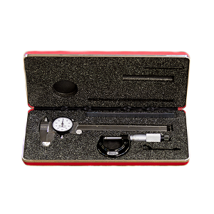 This inspection kit includes a micrometer, dial caliper, steal scale, and various inspection equipment.